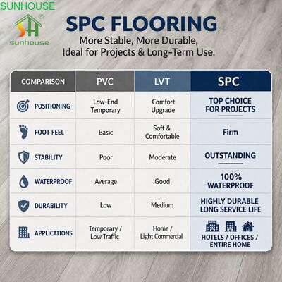 برای پیمانکاران پروژه، توسعه دهندگان املاک و توزیع کنندگان منطقه ای طراحی شده که نمیتوانند شکست کف را در وسط ساخت تحمل کنند،کفپوش های هسته سفت Huiju SPC ترکیبی از یک پایه سنگ پلاستیکی با تراکم بالا با یک پروفایل کلیک-لاک دقیق در پنج گزینه ضخامت است.0، 4.5، 50، 6.0، و 6.5mm. این که آیا کار نیاز به یک تخته مسکن سبک وزن یا یک تخته لایه خیس 0.7mm برای ترافیک تجاری سنگین کلاس 42 دارد، یک تامین کننده طیف کامل مشخصات را پوشش می دهد.هسته غیر چوبی هر حالت خرابی مربوط به رطوبت مرتبط با چوب لایه دار و مهندسی را از بین می برد، در حالی که طبقه بندی آتش Bfl-s1 و مقاومت لغزشی اختیاری R10/R11 محصول را برای انواع ساختمان که کفپوش های استاندارد وینیل را نمی توان مشخص کرد، باز می کند.کارتون های صادراتی پنج لایه ای با مستندات کامل بارگذاری عکاسی تاخیر در بازرسی بندر و اختلافات بیمه در حملات بین المللی را کاهش می دهد.